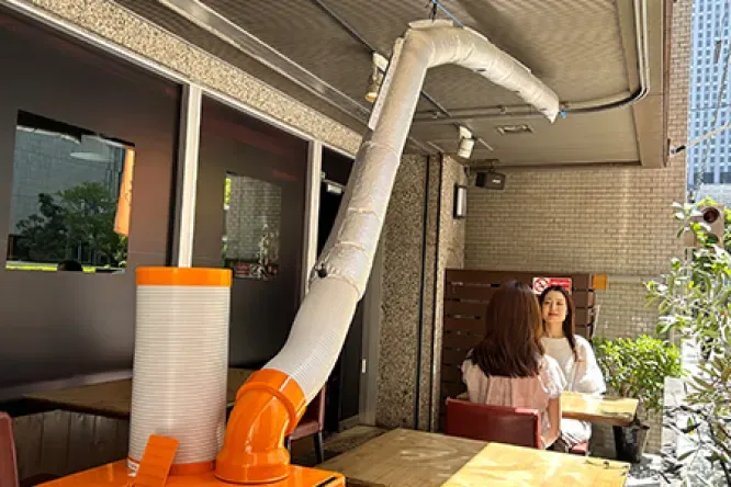 ダクトの開口部から出る冷風によって、最大で3人を冷却することができます。消費電力を変えることなく複数人を冷却できるため、省エネにもつながります。