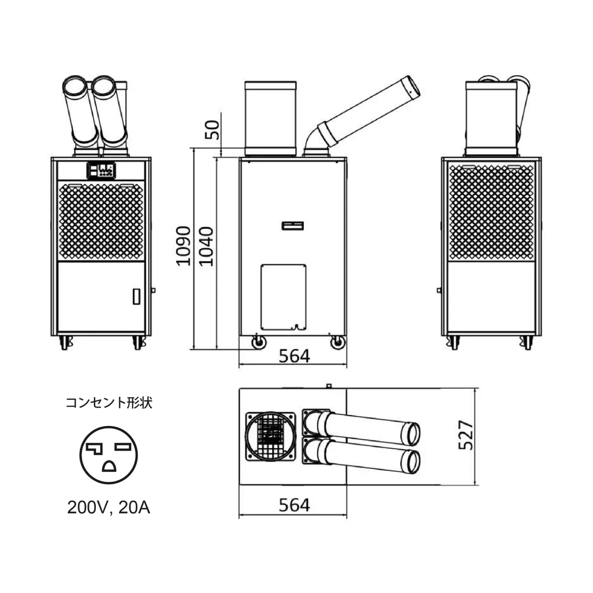 冷風分散ダクト一体型スポットクーラーの製品仕様