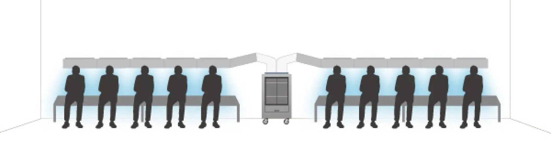 基本セットをベースに、ダクトの追加、延長も可能。高い拡張性を持ち、冷却したい人数やレイアウトに合わせて柔軟に対応できます。