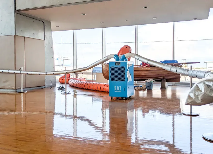 エアホースワン+大型空調機の組み合わせで広い範囲に冷気を噴射