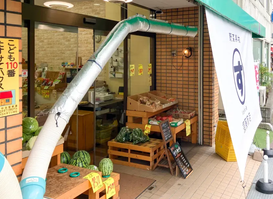 当店では商品を軒下に陳列していますが、夏場は暑さによる商品の劣化が気になっていました。以前より首振り型のスポットクーラーを使用していましたが、首振り機能が壊れ、一部分にしか送風できない状態でした。