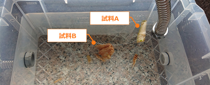 試料Bの2種類をオゾン水に浸した