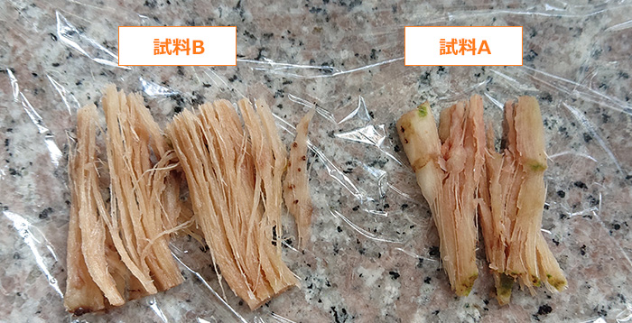 | 試料A | 緑の表皮部分に ぬめりが少し残る |